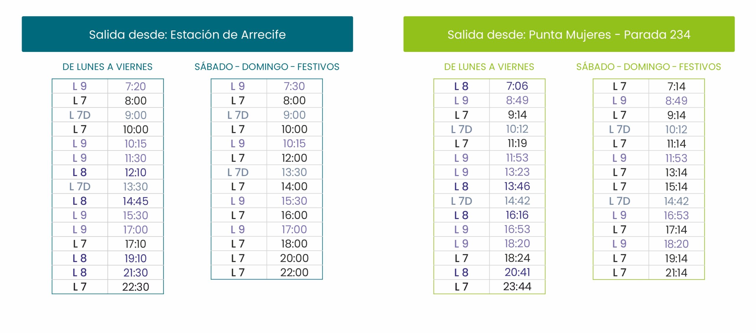 Tabla de horarios